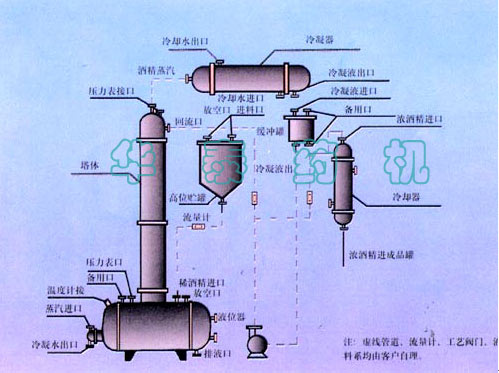 Purpose: This equipment adopts high efficient stainless steel corrugated fillings,all made of stainless steel in order to ensure the alcohol can¡¯t be polluted.The tower adopts knock-down V style pipe,so it is convenient for heating ektexine and cleaning the wall wiall of the tower.The equipment adopts two styles of external and internal heating,the clients may choose it according to the pratical needs.